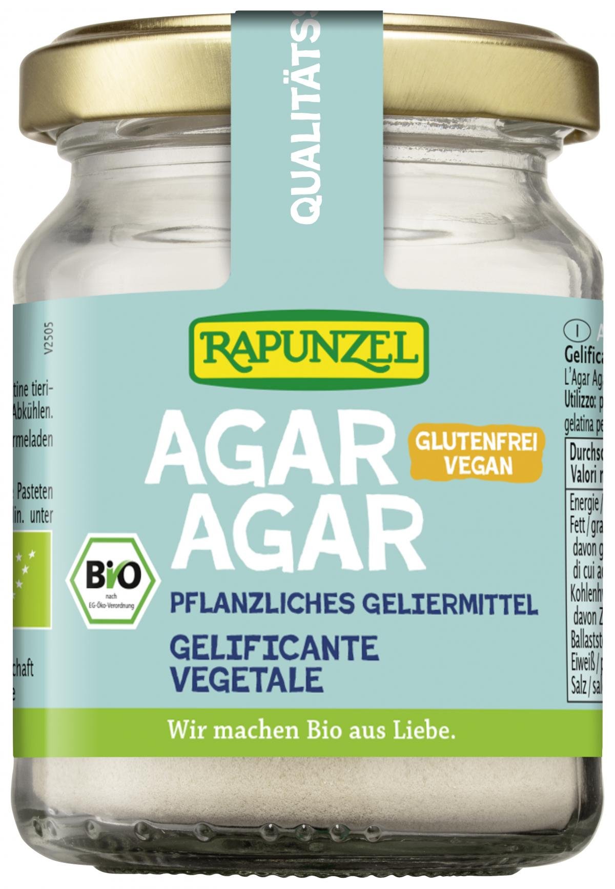 Rein pflanzliches Gelier- und Bindemittel. Sehr ergiebig und eine perfekte Alternative zu Gelatine tierischen Ursprungs. 1 TL (2g) entspricht etwa 5 Blatt Gelatine.